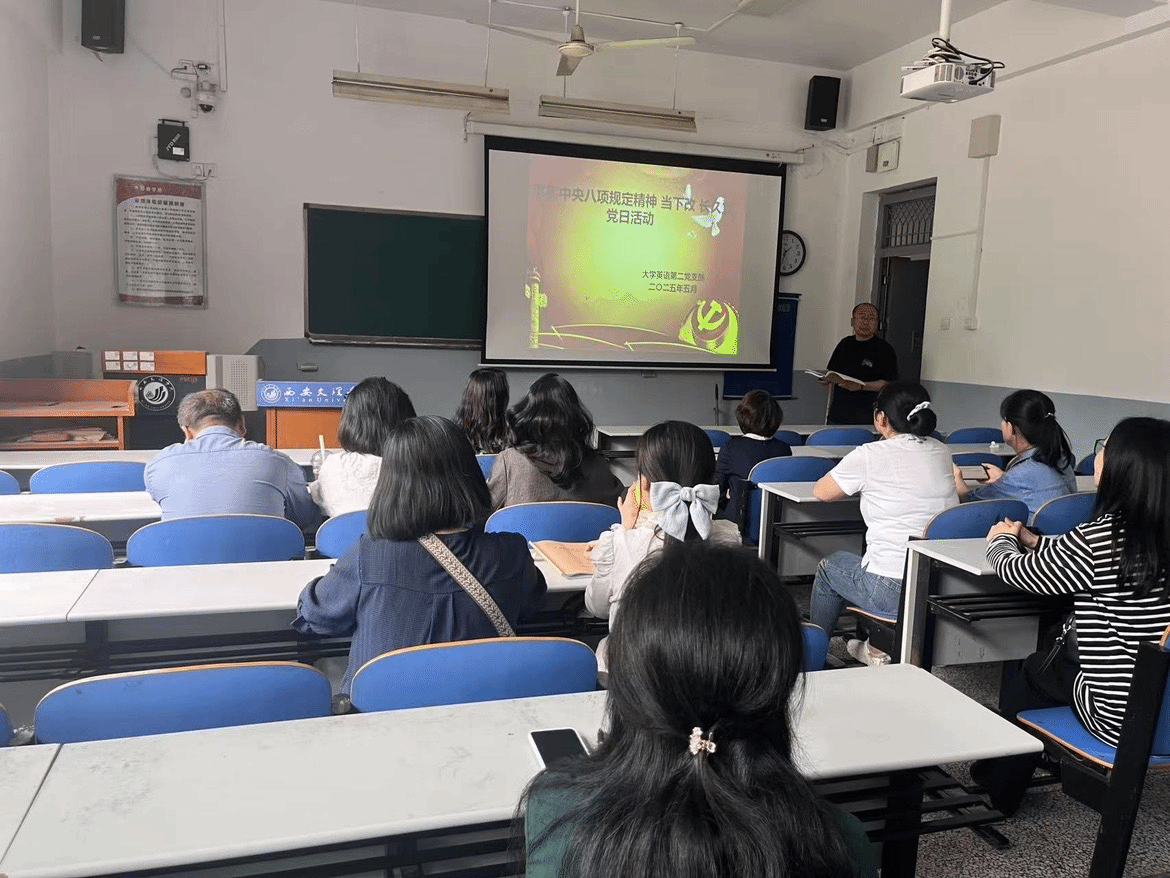 按照公司、公司党组织关于深入贯彻中央八项规定精神学习教育的实施方案和相关工作要求,结合2025年各级教育大会精神、公司第四次党代会精神,更好落实践行公司党政协同发展,5月14日,大学英语第二党支部在弘文楼H0127召开“落实中央八项规定精神 当下改 长久立”主题党日活动,会议由支部书记吴永宏主持,支部13名党员参加活动。