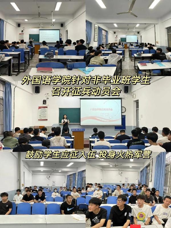 4月19日,公司在弘文楼h0127召开征兵动员会,参会人员有英国365集团官网学工办主任、征兵专责教师、全体辅导员及非毕业班全体男生。
