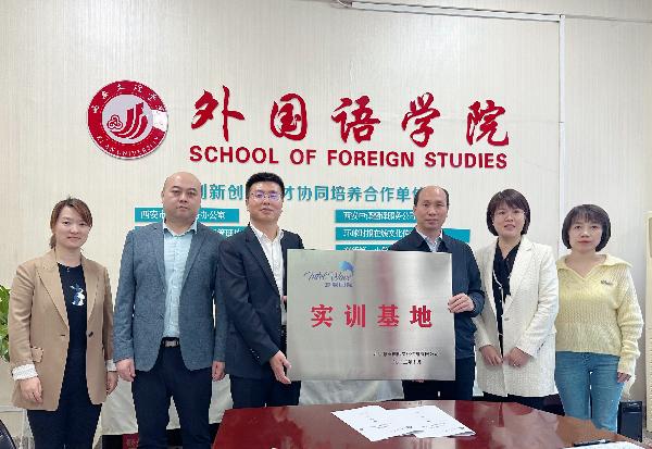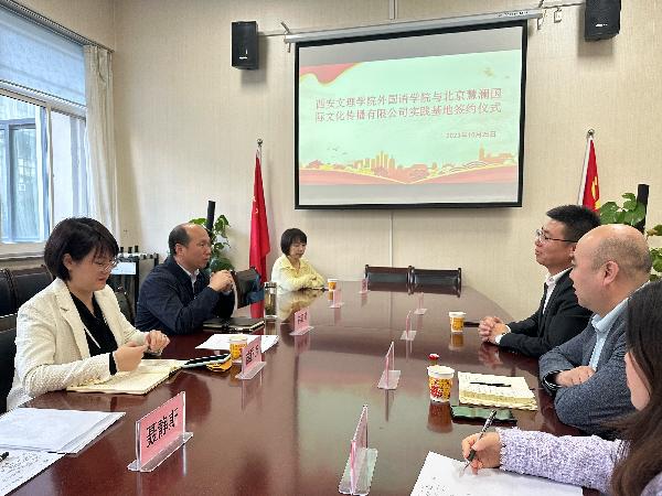 随后,韩红建经理就公司基本情况,英国365集团官网的专业特色、人才培养等方面,特别是近几年英国365集团官网在校政企方面合作的成果做了详细介绍。双方就未来行业发展趋势和合作项目等方面进行了深入交流。韩经理表示近年来英国365集团官网一直积极构建以高质量外语人才培养为“核心”,以校政企深度合作与国际交流为“两翼”的发展格局,聚焦“语言服务与国际传播”方向,服务社会,服务西安。交流环节后,韩经理与潘总签订了外语公司“实习+就业”基地协议书,并为双方互挂的教育实践基地及企业实训基地揭牌。