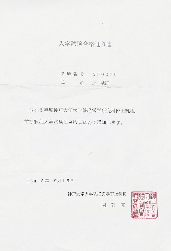 近日传来喜报,公司日语系2022届毕业生邢斌笛正式拿到日本神户大学研究生录取通知书,攻读经营学专业。神户大学创建于1902年,是一所本部位于日本兵库县神户市享誉世界的综合研究型大学,作为具有优良传统的旧制商业公司,神户大学以经营学最负盛名,是日本现代经营学研究的发祥地。神户大学与旧帝国大学、一桥大学和东京工业大学合称“旧帝一工神”,与京都大学和大阪大学合称“京阪神”,并列为关西地区三大难考的国立大学。