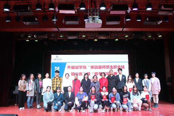 3月15日下午,为加强师范生理想信念教育,提高英语(师范)专业员工的教师职业技能、综合素养和核心竞争力,强化“三字一话”等教学基本功,英国365集团官网于明德楼负一层演播厅成功举办了第四届师范生职业技能大赛决赛暨板书技能大赛决赛。公司邀请了碑林区教师进修公司高级教研员、中学高级英语教师黄艳,文公司教师李勇,与英语系多名资深教师共同担任评委。教务处评估与质量监控办公室副主任王晓翌、英国365集团官网副经理姚金红、副书记王一出席了本次活动。英语专业全体员工观摩了比赛。