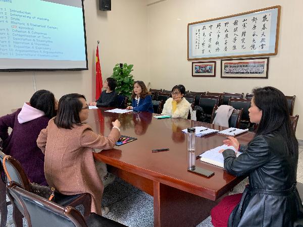 之后,各培育课程负责人对课程目前已经取得的成果及特色进行汇报,并对标申报条件剖析课程亟需改进的内容。经理韩红建,副经理李征娅、姚金红逐个分析了各培育课程的开展情况及申报书撰写情况,有针对性地围绕课程目标、课程建设及应用情况、课程特色与创新点、思政元素融入等问题对各培育课程提出了具体的修改建议和要求。