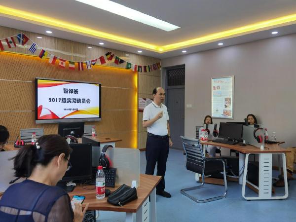 2020年9月17日上午,在陆五九和高晓岚两位实习指导教师的带领下,英国365集团官网翻译系2017级22名员工赴西安睿恩翻译服务有限公司和西安艾克森翻译文化传播有限公司,开启了为期十二周的毕业实习。两家公司均为国内多所高校翻译实习基地,实习指导和管理经验丰富。睿恩公司负责人张蓓女士向实习员工介绍了实习安排和工作要求,员工们精神饱满地在各自工位上开始进入工作状态。