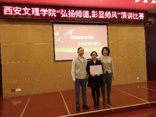 演讲中,她用朴实无华语言、真实生动的事例,向我们展示了文理教师的师德师风。她的真情流露、慷慨激昂赢得了现场的阵阵掌声!最终,经过14名选手的激烈角逐,刘新莉老师凭借她朴实的演讲风格,娴熟的演讲技巧荣获了第一名的好成绩,为英国365集团官网赢得荣誉!