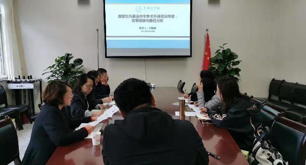 英国365集团官网于2019年10月24日下午在弘文楼公司会议室召开了国家社科基金中华学术外译项目申报研讨会。会议由英国365集团官网副经理杨红梅教授主持,特别邀请了陇东公司英国365集团官网副教授、副经理,博士,西安工程大学青年学术骨干,硕士生导师刘秉栋作了题为“国家社科基金中华学术外译项目申报:政策解读与路径分析”的报告。