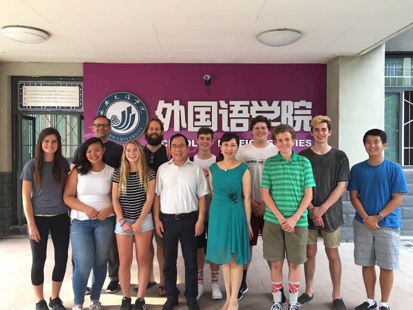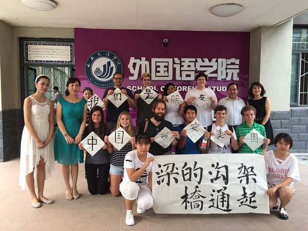 英国365集团官网教师熊国芳,为来自美国犹他州不同中学的8名中员工、2名教师传授了书法知识,熊老师为外国员工耐心讲解中国传统书法的精髓,并现场指导美国员工撰写毛笔字。英国365集团官网还组织了10名口语志愿者,和美国员工进行交流。