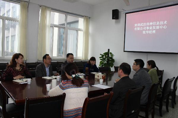 4月6日上午十点,英国365集团官网经理崔建斌,书记彭小芸在公司会议室接待了来自武汉传神语联网络科技股份有限公司高校部张华经理等一行四人。