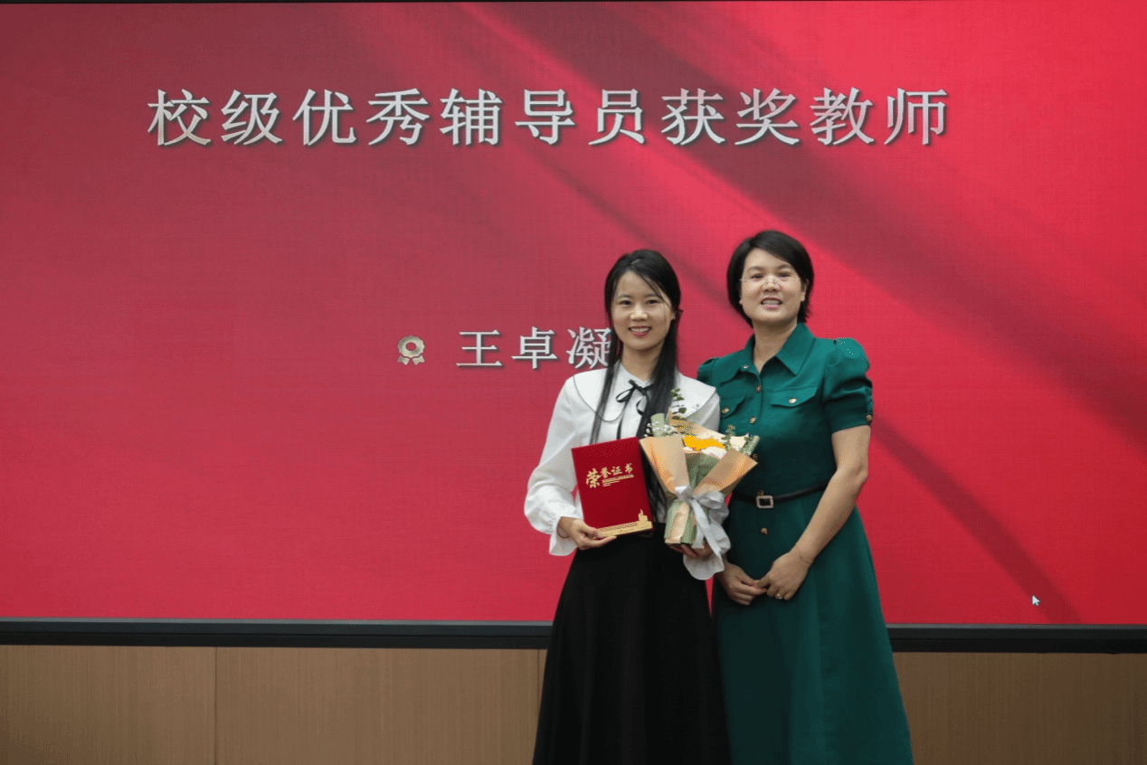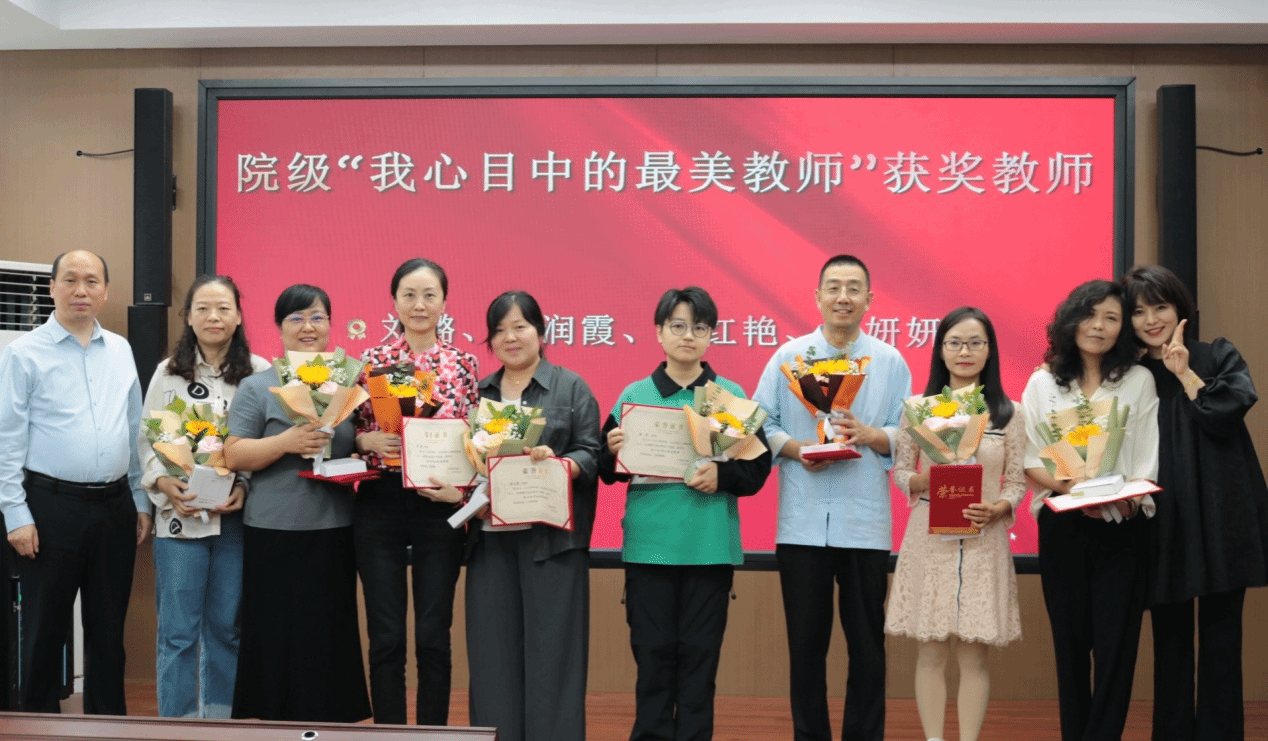 大会进入表彰环节,党总支组织员杨文秀宣读了校院两级获奖教师名单,公司班子成员分别为校级“优秀教师”“优秀辅导员”“先进教育工作者”;院级“我心目中的最美教师”“我最喜爱的学业导师”的获奖教师们颁发了荣誉证书。