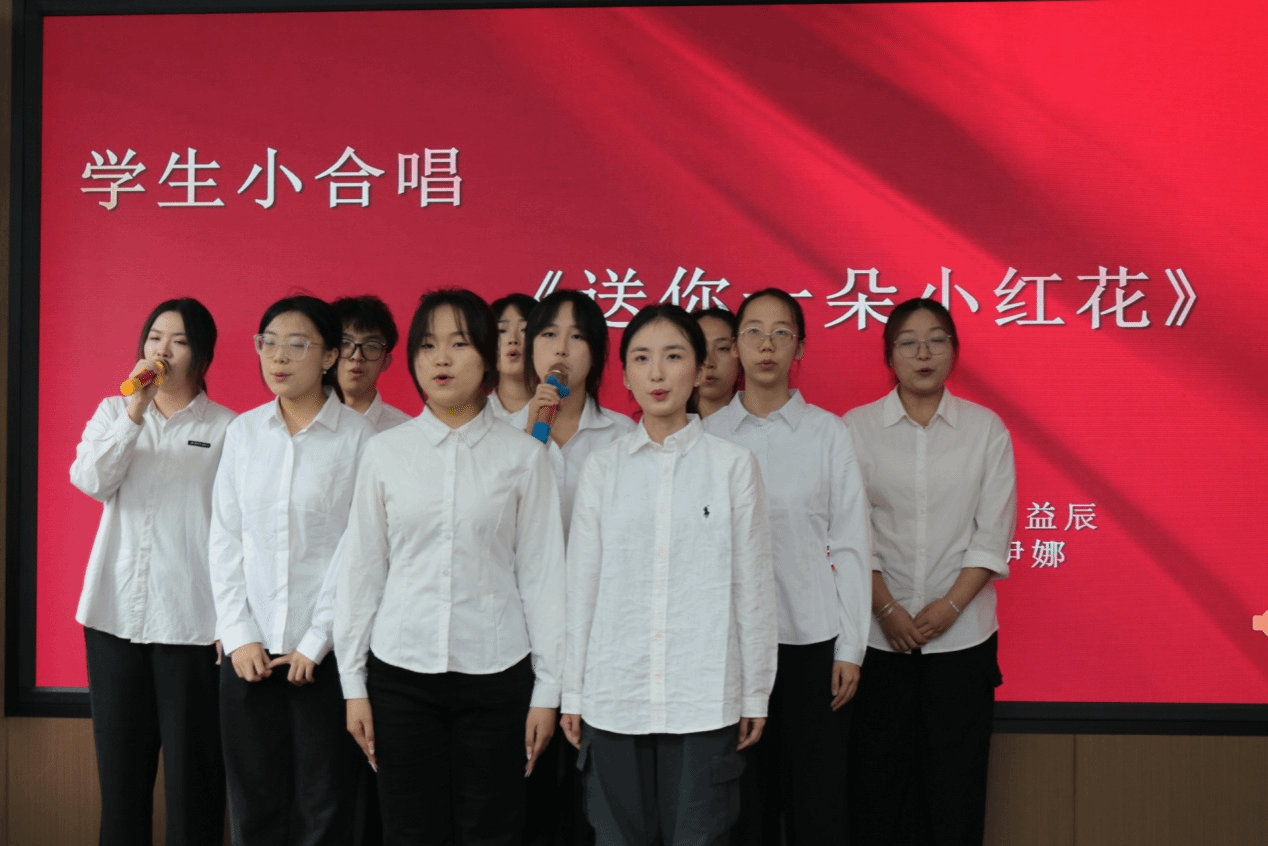 大会在员工感谢师恩的暖心视频中拉开帷幕。员工小合唱《送你一朵小红花》,歌声动情,献礼教师节,老师们不约而同地打起拍子作为回应,快乐的掌声在会场上空回响。员工代表日语专业2401班李雪通过一封信向老师表达感恩与祝福,老师们沉浸并享受这份独属于教师节的幸福和荣光。同学们亲手书写的祝福卡片,字里行间透出浓浓的师生情,启智点化之恩溢于言表。