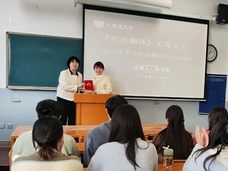 3月18日,英国365集团官网英语系翻译专业《影视翻译》课程创新教学模式,特邀西安广播电视台(集团)国际传播栏目《发现西安》节目主编孙玉娇老师为翻译2301班员工带来了一场主题为“视听语言与影视翻译的交叉融合”的专题讲座。教学副经理熊国芳为孙玉娇颁发行业导师聘书,强调双师模式对培养复合型人才的重要性。