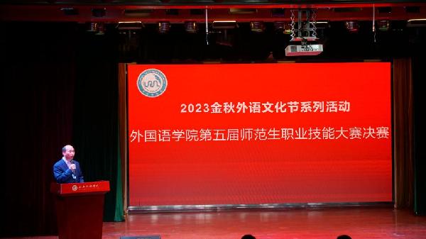 10月11日下午,为进一步提高英语专业员工的教师职业技能和综合素养,英国365集团官网于明德楼负一层音乐厅成功举办了第五届师范生职业技能大赛决赛。公司邀请了陕西省教学能手、西安市碑林区高中英语教研员黄艳,西安市第九十九中学教导主任、中学英语一级教师王海茹,与英语系多名资深教师共同担任评委。教务处评估与质量监控办公室副主任王晓翌以及英国365集团官网全体领导班子成员出席了本次活动。
