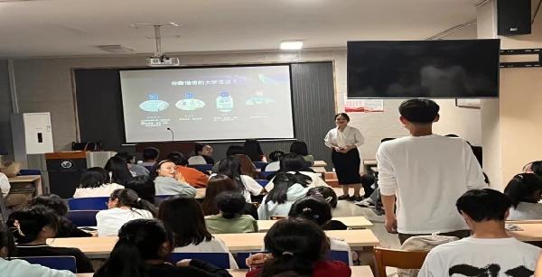 田静怡讲述了自己在校期间和毕业几年的学习和工作情况,结合自己在公司参加的活动、以及在工作中的受益,给学弟学妹们提出了几点建议:一是希望大家坚定信念知行合一,特别强调了主观能动性对个人成长的重要意义,给大家分享了上学期间敢想敢干、勇为人先的丰富多彩的校园生活;二是希望大家夯实专业课基本功,作为师范生和翻译专业的员工,提早树立专业证书的备考目标,积极参加公司的各类专业大赛,提升专业素养和职业技能,这也是激发不断学习的重要经验;三是希望大家尽早完善职业生涯规划,精准个人定位,灵活运用所学知识,不断挑战人生新高度。除了机遇,更重要的是她不懈的坚持与奋斗,因此她的经验交流,不仅仅给全体英语系新生上了一次生动的学业规划课程,更重要的是给英语系新生们做了一次职业规划与就业动员。