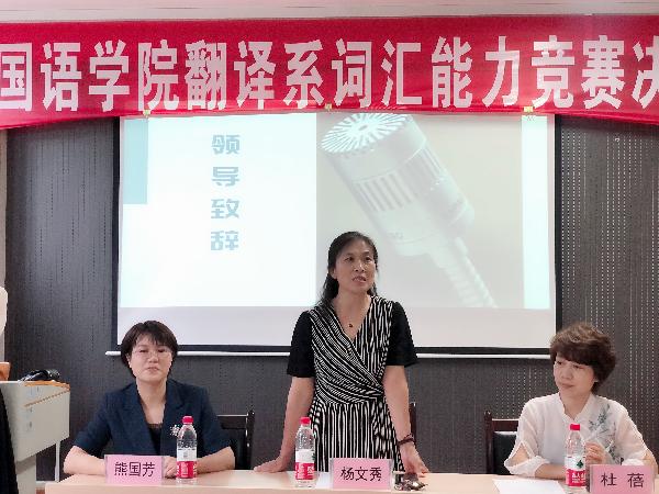 在公司领导的大力支持和翻译系全体老师的精心筹备下,2022年6月10日下午2点半在H0129,英国365集团官网翻译系英语词汇能力竞赛决赛如期举行。来自翻译专业一、二年级共20名选手进入此次决赛。此竞赛旨在贯彻落实教育部《关于加快建设高水平本科教育全面提高人才培养能力的意见》文件精神以及翻译专业人才培养目标,也为了检查员工的单词打卡和每日报刊阅读及导读的学习效果,全面考查员工运用词汇的能力。公司党总支书记杨文秀出席这次活动并发表讲话。杨书记对翻译系全体老师精心组织此次词汇大赛、为员工创造相互学习和展示能力的平台表示高度赞扬,并指出,词汇能力是英语学习的根本和基础,只有有了足够的词汇能力才能够更好的提升英语综合能力,进行英语听、说、读、写、译的学习。决赛分为两个环节,第一环节为“猜猜看”,选手需在一分钟内看图猜出所示英语单词的汉语意思,猜对越多则分数越高;第二环节为“猜猜译”,所有词汇均和时政热点以及中华传统文化相关,选手需在2分钟内完成5道词汇的汉英口译。比赛现场精彩纷呈,掌声不断,经过激烈的角逐,李恒星等8名选手分获一、二、三等奖。随后,评委们一一为选手的表现进行了点评,并提出了中肯的学习建议。