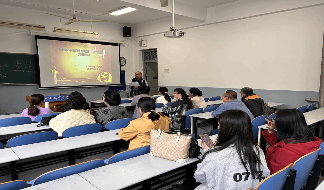 10月25日,以深入学习二十届三中全会精神为契机,大学英语第二支部在弘文楼H0127开展“高校教师如何支撑建设中国式现代化”主题党日活动,支部14名党员参加活动。