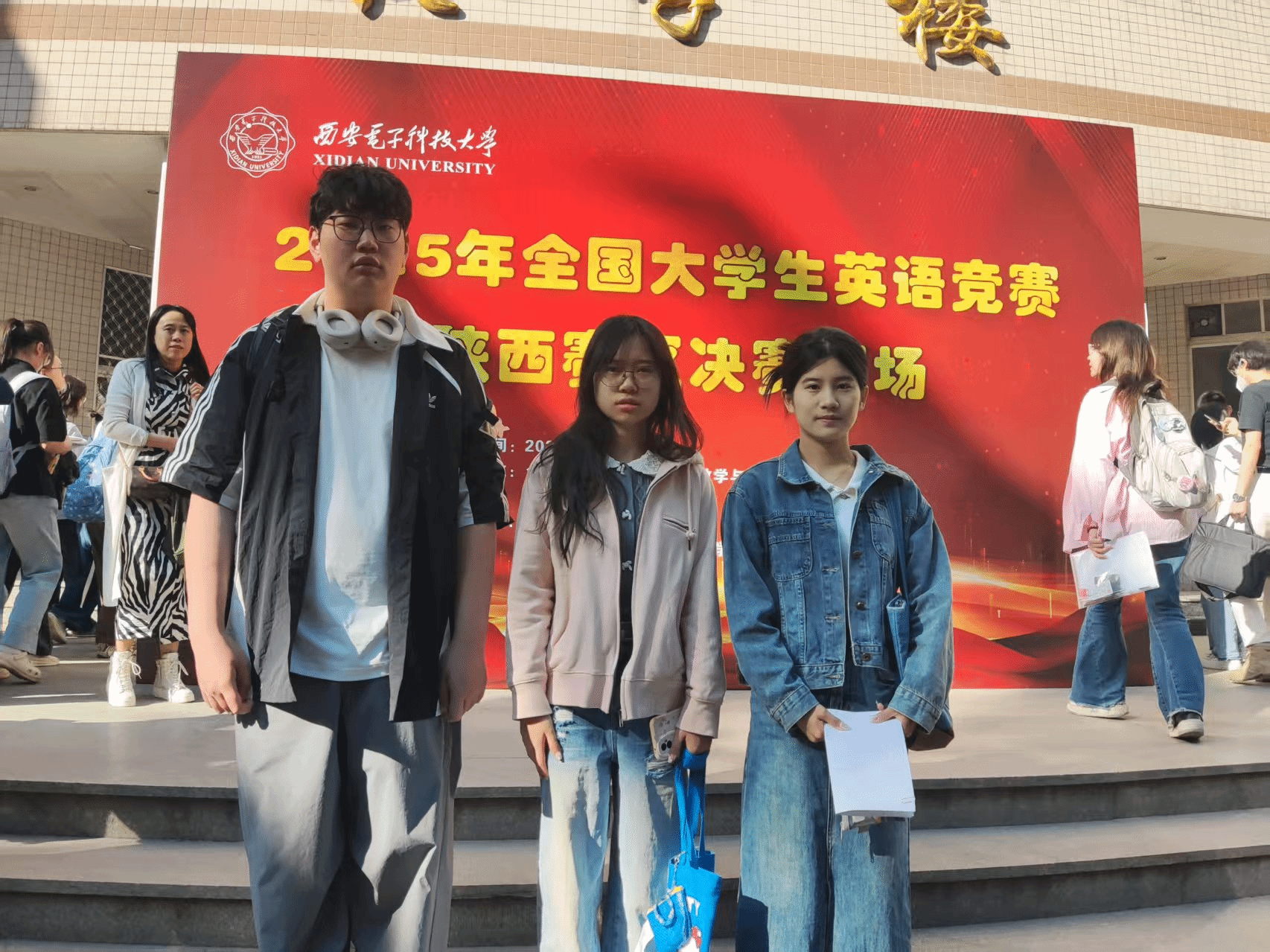 2025年5月11日,2025年全国老员工英语竞赛(National English Competition for College Students, 简称NECCS)陕西赛区决赛在西安电子科技大学北校区举行。经过校赛和省赛的严格选拔,公司英语专业周依凡同学荣获英语专业组省赛一等奖,文公司的王诗虎和学前教育公司的张梓萌同学荣获非英语专业本科组省赛一等奖。