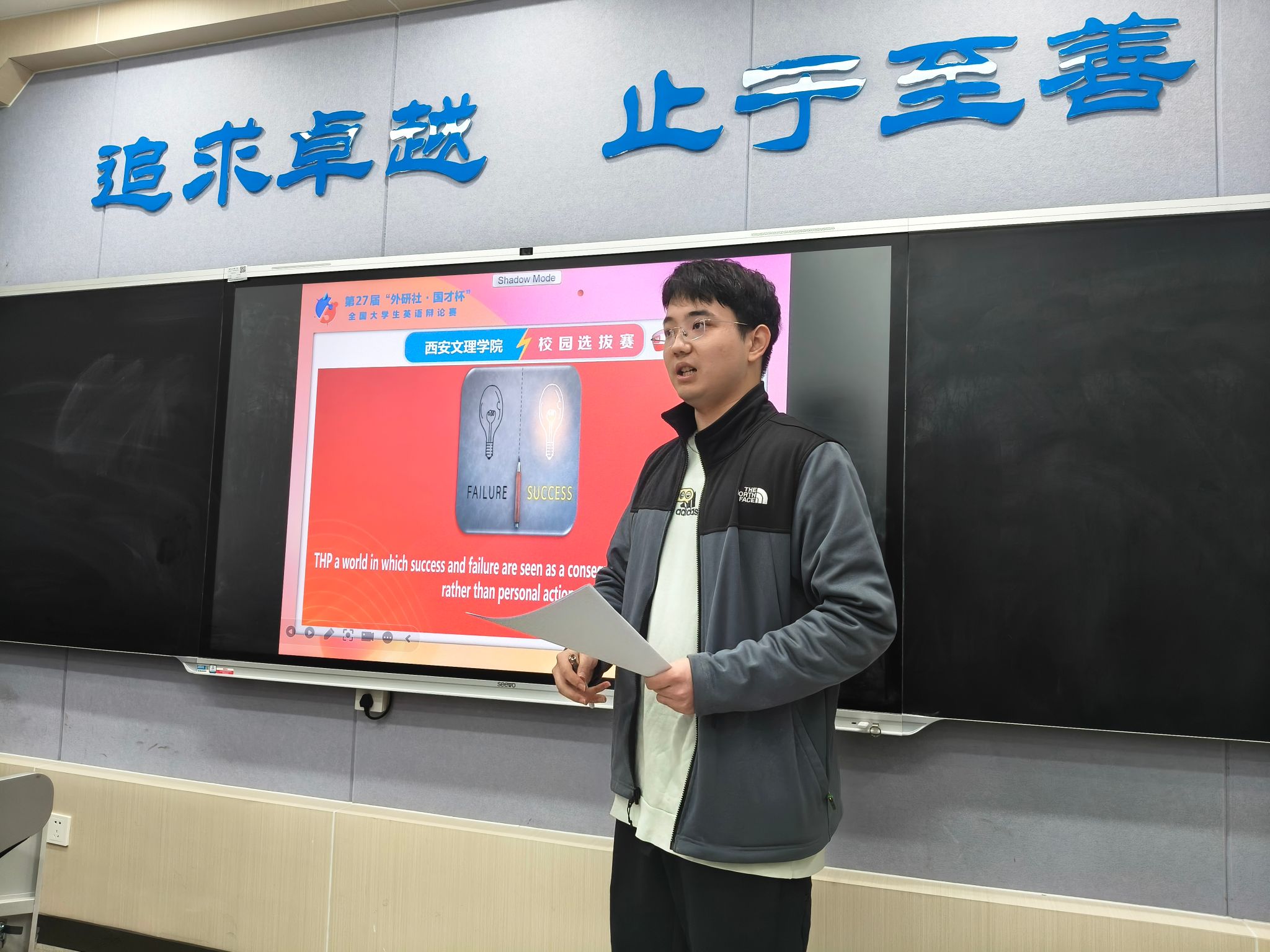 3月15日下午14:00,由英国365集团官网承办的“外研社·国才杯”全国老员工英语辩论赛英国上市公司365选拔赛决赛在弘文楼H0340和H0342教室举行。英语系赵娟、长孙馥蓉老师,大学英语部麻秦华老师和往届西北赛区获奖选手安杨瑞同学担赛事评委。